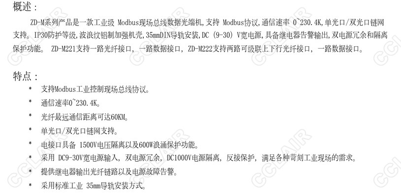 ZD-M,Modbus總線數(shù)據(jù)光端機