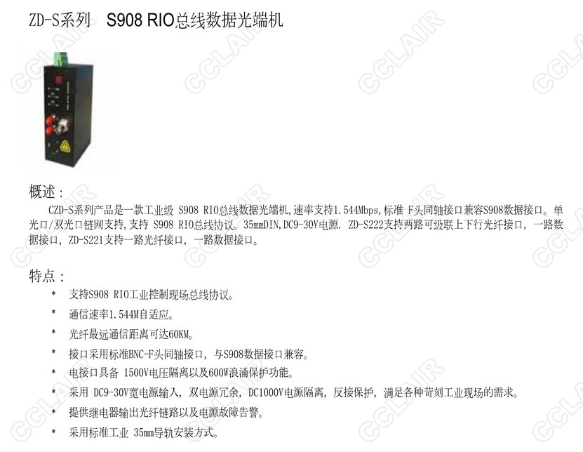S908 RIO總線數(shù)據(jù)光端機(jī)
