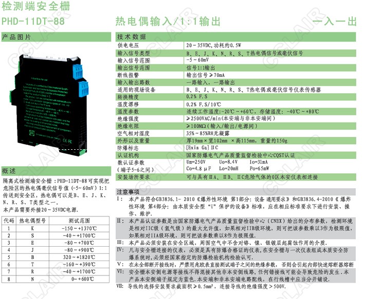 PHD-11DT-88檢測端安全柵