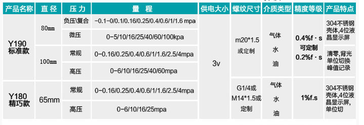 MIK-Y190數(shù)顯壓力表,內(nèi)置高精度壓力傳感器,能夠準(zhǔn)確實(shí)時(shí)顯示壓力,并且具有抗震動(dòng)、顯示精度高、穩(wěn)定性高、可清零等特點(diǎn)。該款智能壓力表采用LCD顯示屏,具有背光、單位切換等多種功能,操作簡(jiǎn)單,安裝簡(jiǎn)捷。由于采用低功耗的處理器芯片,續(xù)航時(shí)間長(zhǎng),具有自動(dòng)待機(jī)與一鍵清零功能,使用方便。改款智能數(shù)顯壓力表可以測(cè)量水、油、空氣等對(duì)不銹鋼無(wú)腐蝕的介質(zhì),適合壓力容器、自動(dòng)化設(shè)備、實(shí)驗(yàn)室設(shè)備配套的使用。