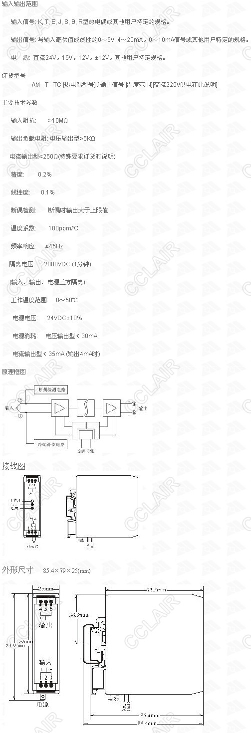 AM-T-TC/U5,AM-T-TC/I4,熱電偶信號(hào)調(diào)理器