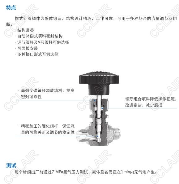 帽式針閥閥體為整體鍛造,結(jié)構(gòu)設(shè)計(jì)精巧,工作可靠,可用于多種場(chǎng)合的流量調(diào)節(jié)及切斷。