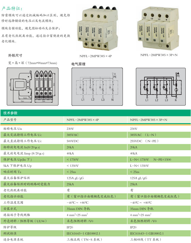 NPFL-2MPW385×4P,NPFL-2MPW385×3P+N,NPFL-2MPW385×3P,三相交流電源系統(tǒng)浪涌保護器(40KA)