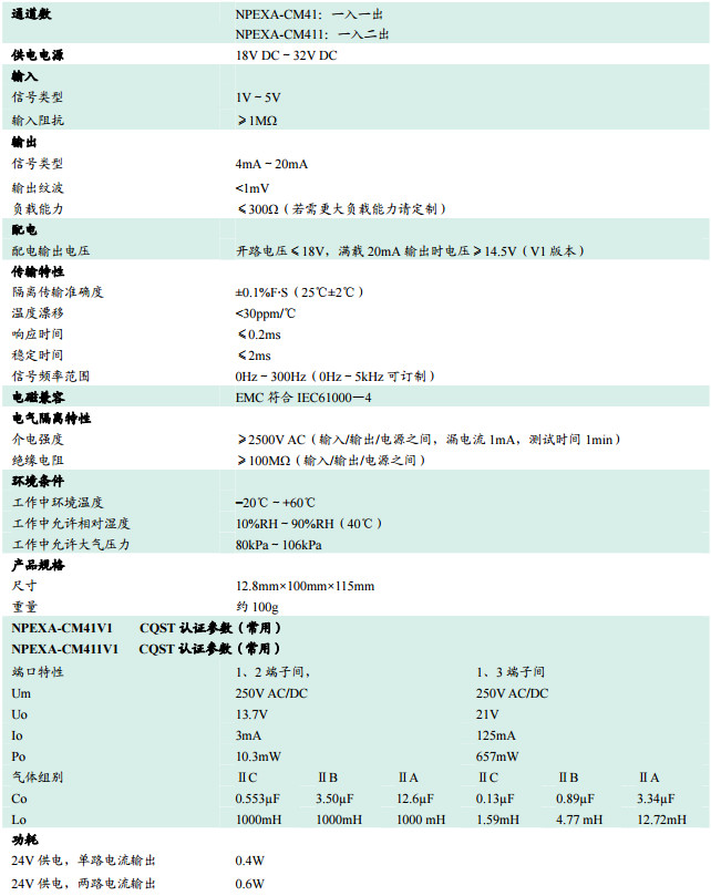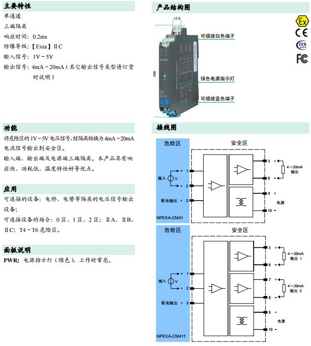 NPEXA-CM41,NPEXA-CM411,電壓輸入型隔離式安全柵