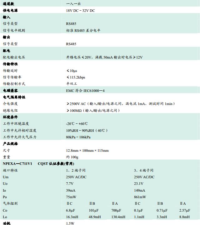 NPEXA-C711,檢測(cè)端隔離式安全柵
