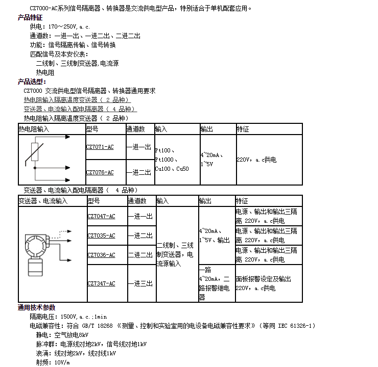 CZ7071-AC,CZ7076-AC,CZ7047-AC,CZ7035-AC,CZ7036-AC,CZ7347-AC,信號(hào)隔離器、轉(zhuǎn)換器