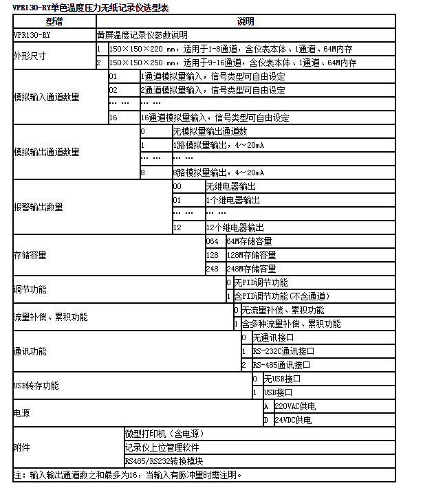 VPR130-RY單色溫度壓力無紙記錄儀以32位嵌入式CPU為核心,并輔以大規(guī)模集成電路、大容量FLASH存儲、信號智能調(diào)理、SmartBus總線以及高分辨率圖形液晶顯示器的新型智能化無紙記錄類儀表。公司產(chǎn)品采用320×234真彩TFT液晶顯示屏;支持16路模擬量萬能輸入、8路模擬輸出、12路報警輸出、16路全隔離24VDC配電輸出,設(shè)定數(shù)據(jù)與記錄數(shù)據(jù)具掉電保護功能。具有功耗低、精度高、體積小、通道數(shù)多、通用性強、可靠性高、運行穩(wěn)定等特點。儀表采用USB Host技術(shù),支持USB 移動存儲器的數(shù)據(jù)讀寫;采用RS-232C/RS-485通訊接口,支持標(biāo)準(zhǔn)MODBUS-RTU協(xié)議,可方便實現(xiàn)遠程監(jiān)控。