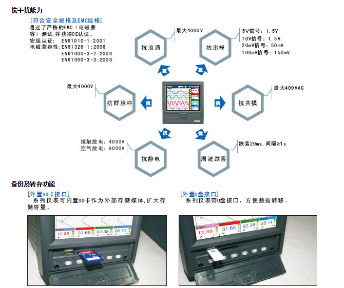 KH600R系列是我公司歷經(jīng)十年開(kāi)發(fā)成功的新一代無(wú)紙記錄儀。產(chǎn)品集高可靠性、高穩(wěn)定性于一身;是國(guó)內(nèi)第一款具U盤(pán)、SD卡雙卡備份的無(wú)紙記錄儀,U盤(pán)實(shí)現(xiàn)數(shù)據(jù)轉(zhuǎn)存,SD卡實(shí)現(xiàn)海量存儲(chǔ);中英文畫(huà)面切換;縱橫走紙自由選擇自定義曲線顏色;信號(hào)萬(wàn)能輸入、高精度、低溫漂、抗干擾能力強(qiáng),并通過(guò)CE認(rèn)證。