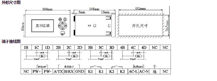 ◆ 2路繼電器報(bào)警輸出,同時(shí)指示各路報(bào)警的下下限、下限、上限、上上限報(bào)警;