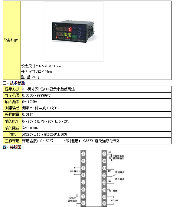 該儀表采用8位微處理器智能化儀表,用戶可通過(guò)二級(jí)參數(shù)方便修改切換為轉(zhuǎn)速/線速度測(cè)量模式模式,雙6位顯示方便用戶設(shè)置任意系數(shù)。