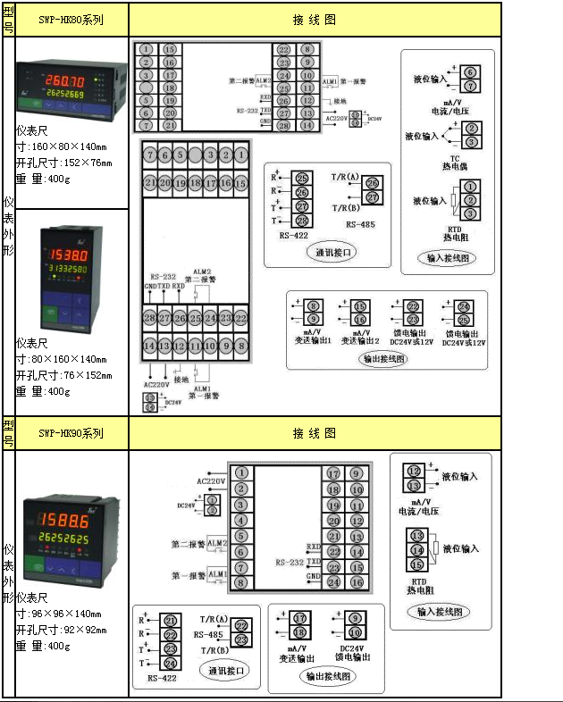 二、儀表外形及接線圖(以下為基本配線,特殊訂貨請參見隨機接線圖)