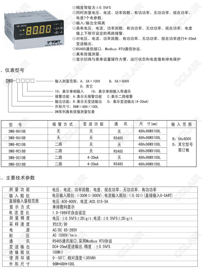 DW8-RA10B,DW8-RA18B,DW8-RC10B,DW8-RC18B,DW8-DC10B,DW8-DC18B,DW8單相多功能電參數(shù)表