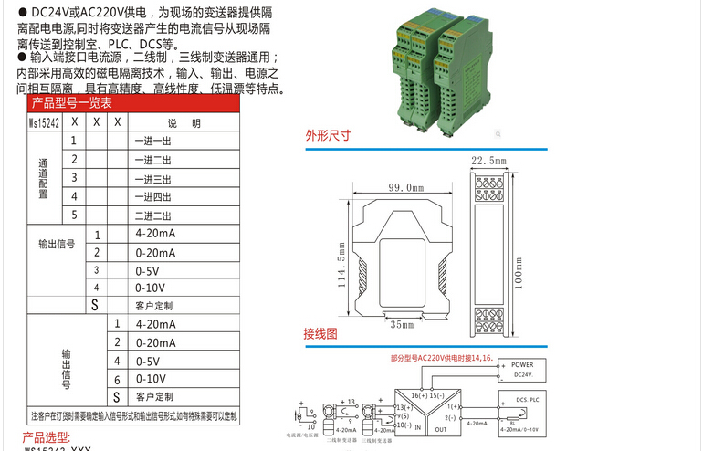 WS15242,WS1524-131,全隔離雙輸出信號分配器,電流轉(zhuǎn)換模塊。