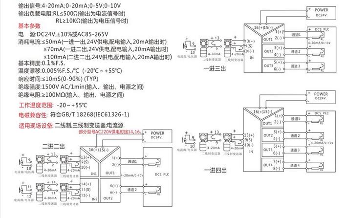 信號(hào)隔離器 分配器 輸入范圍:0-10V、4-20mA、0-20mA、0-5V、0-75mV,等用戶(hù)特定規(guī)格
