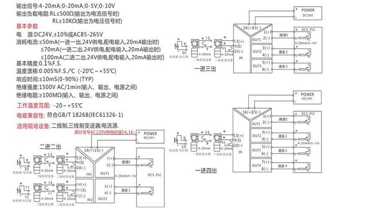 信號(hào)隔離器隔離柵輸入輸出方式:一進(jìn)一出、一進(jìn)二出、一入三出、一入四出、二入二出