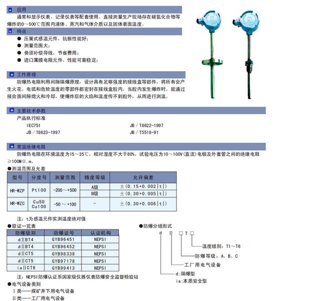 通常和顯示儀表、記錄儀表等配套使用。直接測量生產(chǎn)現(xiàn)場存在碳氫化合物等爆炸的0~500℃范圍內(nèi)液體、蒸汽和氣體