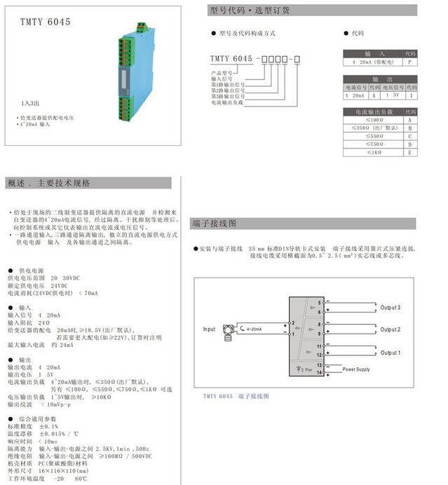 TMTY6045,TMTY6045-PA,TMTY6045-P1,1入3出 電流信號(hào)輸入配電隔離器