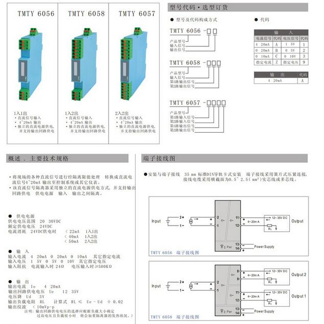 TMTY6056,TMTY6057,TMTY6058 ,TMTY6056-1A,直流信號隔離器(支持輸出回路供電)