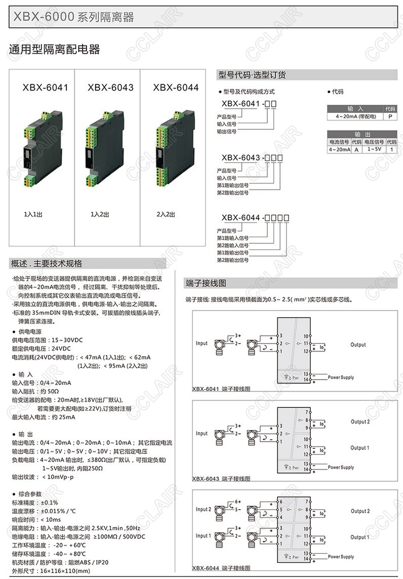 XBX-6000,XBX-6041,XBX-6043,XBX-6044,XBX-6041P1,XBX-6043P1,XBX-6044P1,通用型隔離配電器(一入一出、一入二出、二入二出)