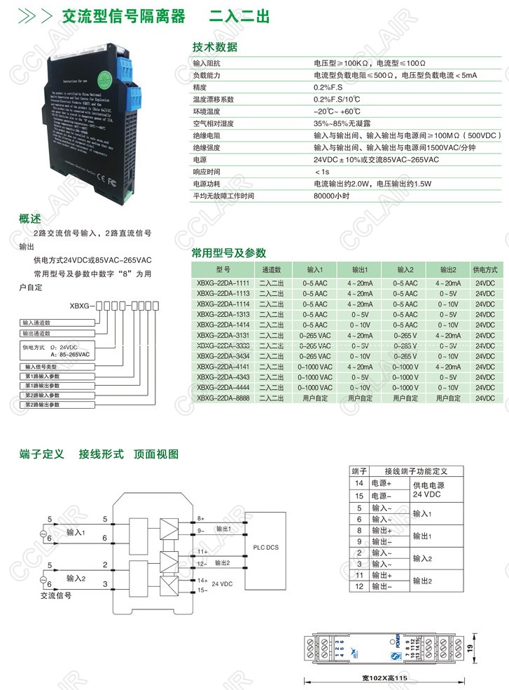 XBXG-22DA,XBXG-22DA-1113,XBXG-22DA-1114,XBXG-22DA-1313,交流型信號隔離分配器(二入二出)