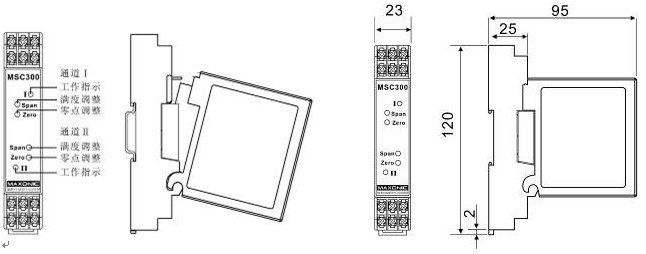 例2:輸入4~20mADC,輸出1為4~20mADC,輸出2為4~20mADC,一入二出,則型號(hào)為MSC301-C0CC