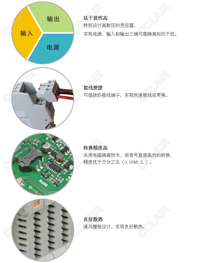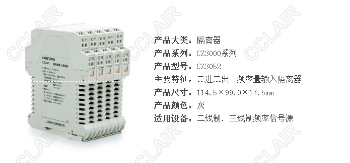 頻率量輸入信號隔離器,將現(xiàn)場儀表產(chǎn)生的頻率量信號隔離輸出,同時給現(xiàn)場儀表提供配電。頻率輸入采用滯回比較電路具有較高的抗干擾性能, 頻率輸出有電平和晶體管輸出兩種方式。該產(chǎn)品需要獨立供電,電源、輸入和輸出三隔離。