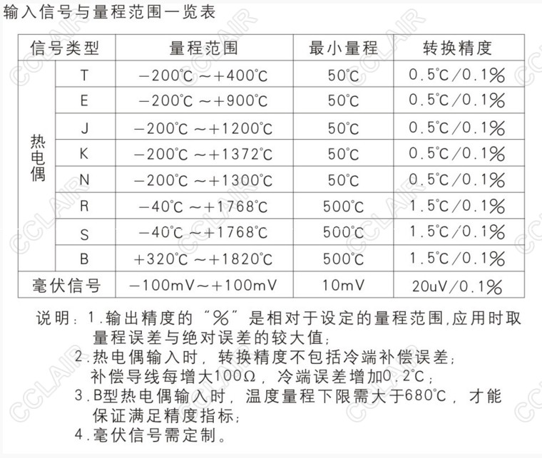一進(jìn)二出 信號(hào)類(lèi)型和測(cè)量范圍可編程; PT100冷端傳感器,高精度自動(dòng)冷端補(bǔ)償; 超量程、斷
