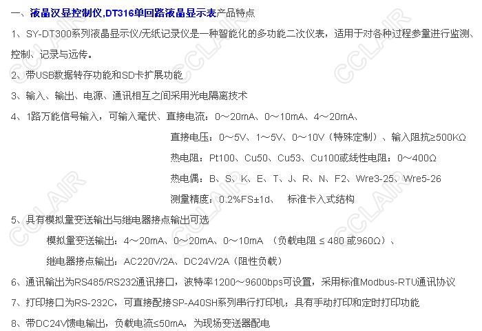 SY-DT316Y,SY-DT316R,SY-DT316YT,SY-DT316RT,SY-DT316YS,DT316單回路液晶顯示控制儀