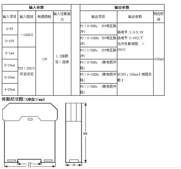 將直流輸入信號轉換成單位脈沖信號0-5KHZ/0-10KHZ