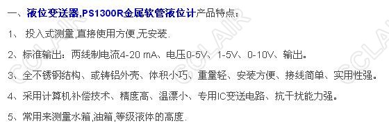 SY-PS1300R-5mH2O,SY-PS1300R-5mH2O-GF,PS1300R-5mH2O,PS1300R金屬軟管液位計(jì)