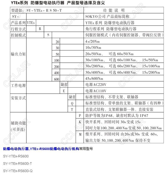SY-YTEX-RS600,SY-YTEX-RS600-T,SY-YTEX-RS600-Q,YTEX-RS600防爆電動執(zhí)行機(jī)構(gòu)