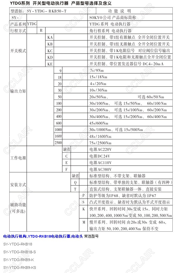 SY-YTDG-RKB18,SY-YTDG-RKB18-S,SY-YTDG-RKB9-K,SY-YTDG-RKB9-KS,YTDG-RKB18電動(dòng)執(zhí)行器電動(dòng)頭