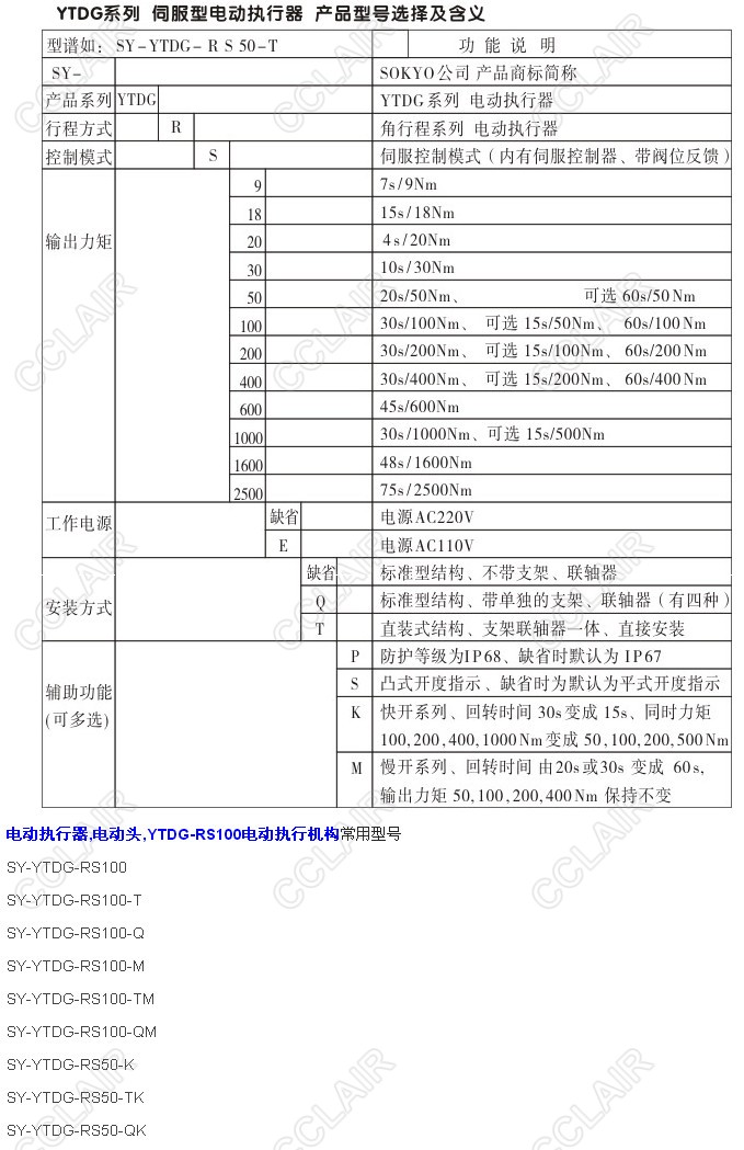 SY-YTDG-RS100,SY-YTDG-RS100-T,SY-YTDG-RS100-Q,YTDG-RS100電動(dòng)執(zhí)行機(jī)構(gòu)