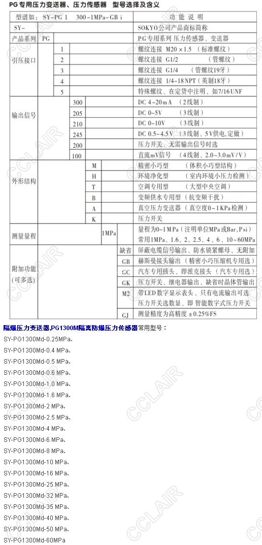 SY-PG1300Md-0.25MPa,SY-PG1300Md-0.4MPa,PG1300M隔離防爆壓力傳感器