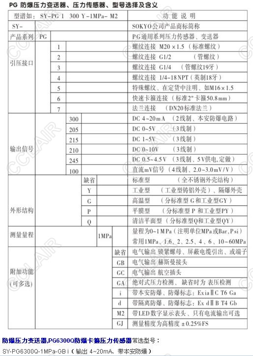 SY-PG6300Q-1MPa-GBi,SY-PG6205Q-1MPa-GBi,PG6300Q防爆卡箍壓力傳感器