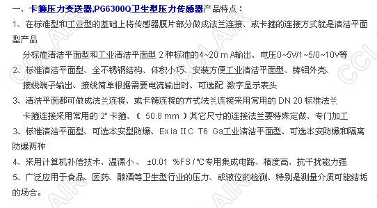 SY-PG6300Q-1MPa-GB (卡箍連接、輸出DC4~20mA) SY-PG6300Q-1MPa-GB i (輸出 4~20mA、帶本安防爆) SY-PG6300Q-1MPa-GBM2(輸出4~20mA、帶數(shù)字顯示)
