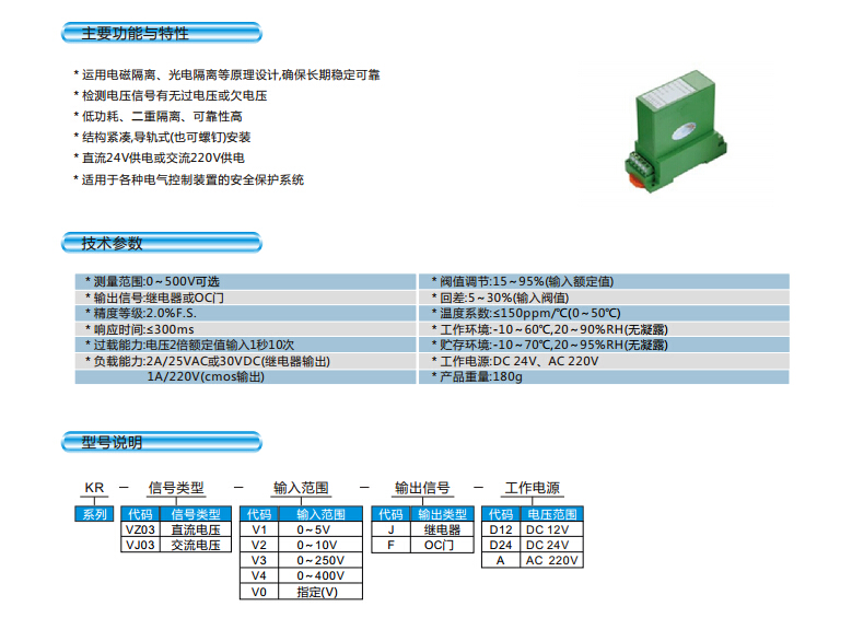 KR,KR-VZ03-V1,KR-VZ03-V2,KR-VZ03-V3,KR-VZ03-V4,電壓越限報警隔離變送器