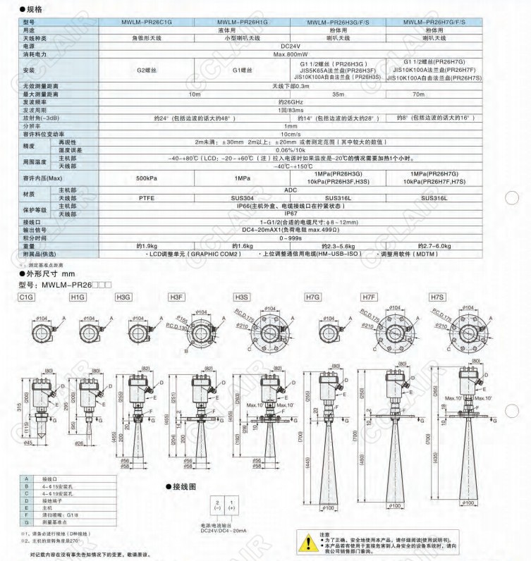 26GHz,MWLM-PR26,26GHz脈沖雷達(dá)式料位計(測量固體料位用)