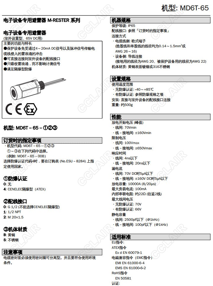 MD6T-24/MD6T-65,MD6T-24-00B,MD6T-24-1,4-20mA直流、脈沖信號(hào)用 室外安裝型 端子臺(tái)連接型避雷器