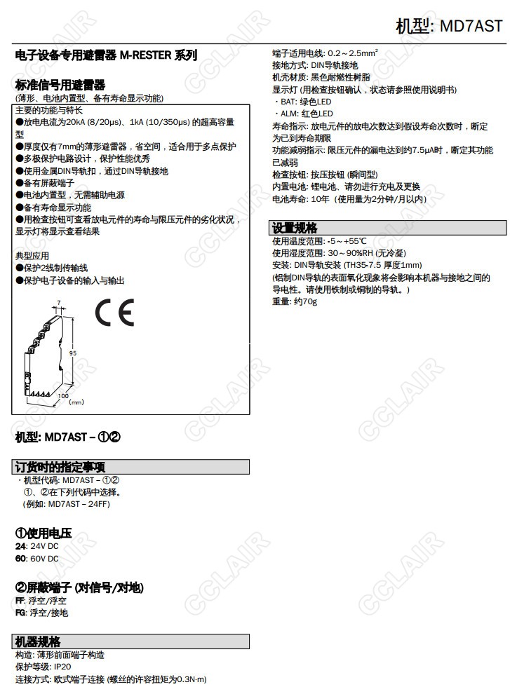 MD7AST,MD7AST-24FF,MD7AST-24FG,MD7AST-60FF,MD7AST-60FG,2線制信號(hào)用避雷