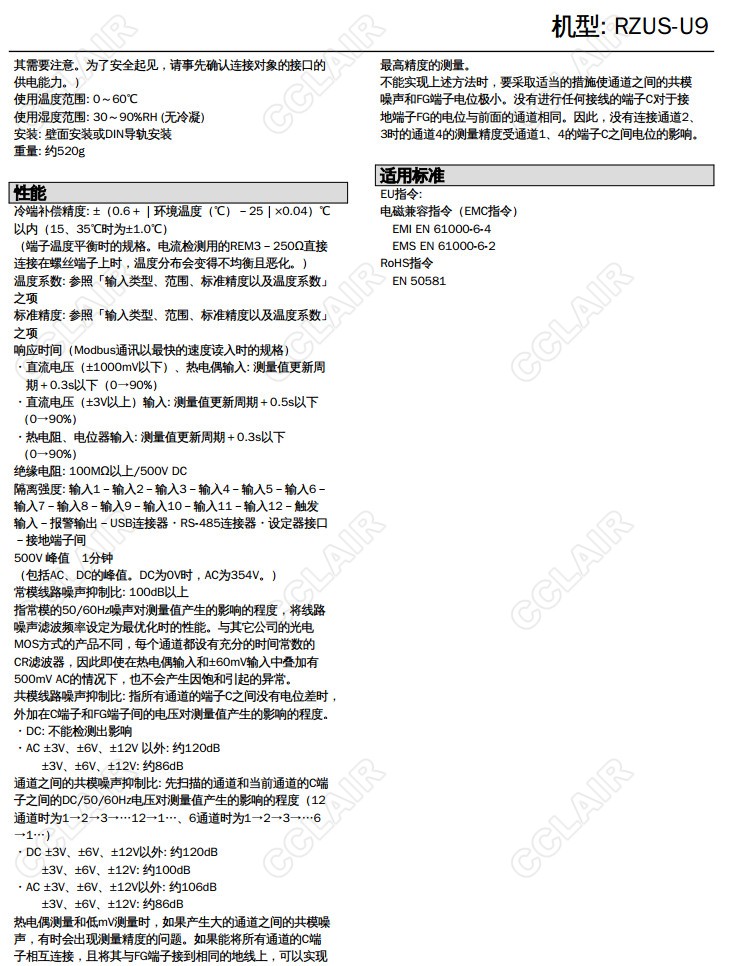 RZUS-U9,RZUS-U9T/MSR,12點萬能模擬量信號輸入