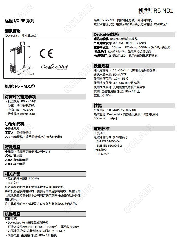 R5-ND1,R5-ND1/Q,R5-ND1/C01,R5-ND1/C02,R5-ND1/C03,DeviceNet通訊模塊