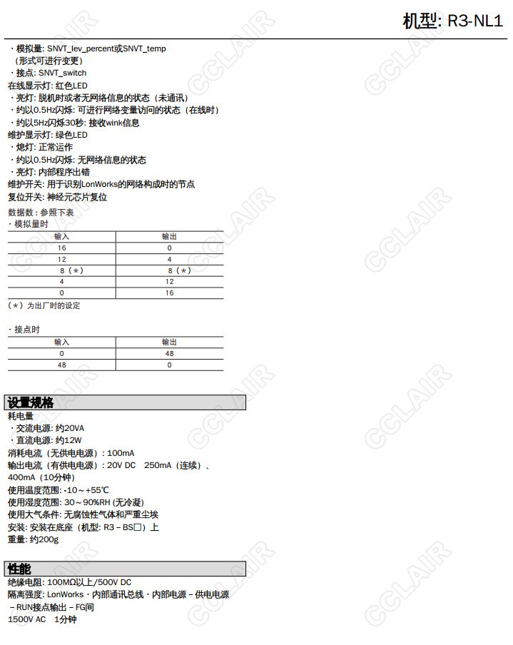 R3-NL1,R3-NL1-R/Q,R3-NL1-N,R3-NL1-K3,R3-NL1-L3,R3-NL1-R,LONWORKS通訊模塊