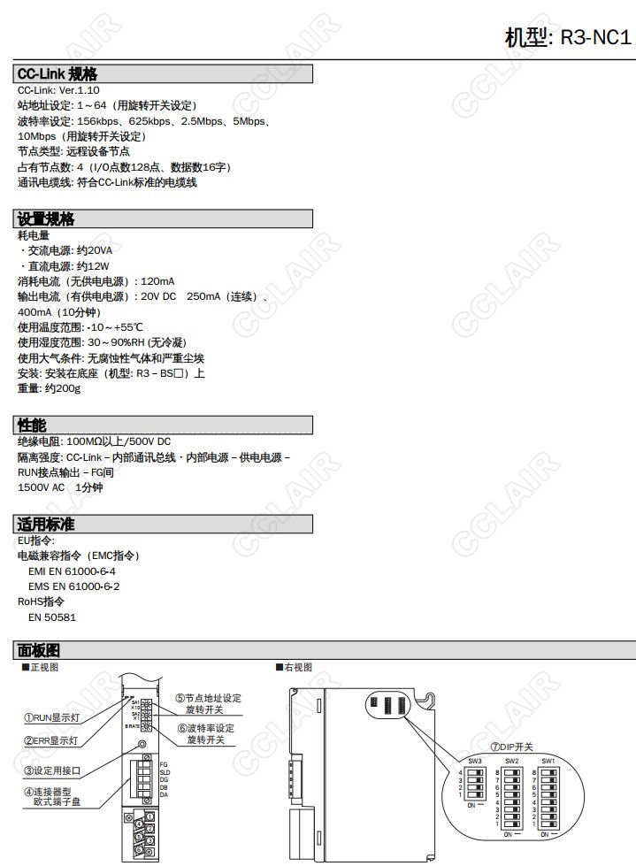 R3-NC1,R3-NC1-R/CE/Q,R3-NC1-N,R3-NC1-K3,CC-Link Ver.1; 模擬量信號 16點通訊模塊