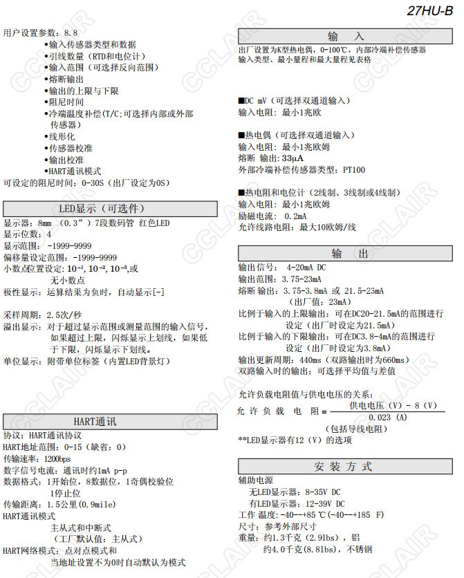 27HU-B,27HU-B-7652,CELENEC隔爆型防爆認證 接線盒內安裝型萬能輸入信號變換器27HU-B-0,27HU-B-3,27HU-B-4,27HU-B-8,