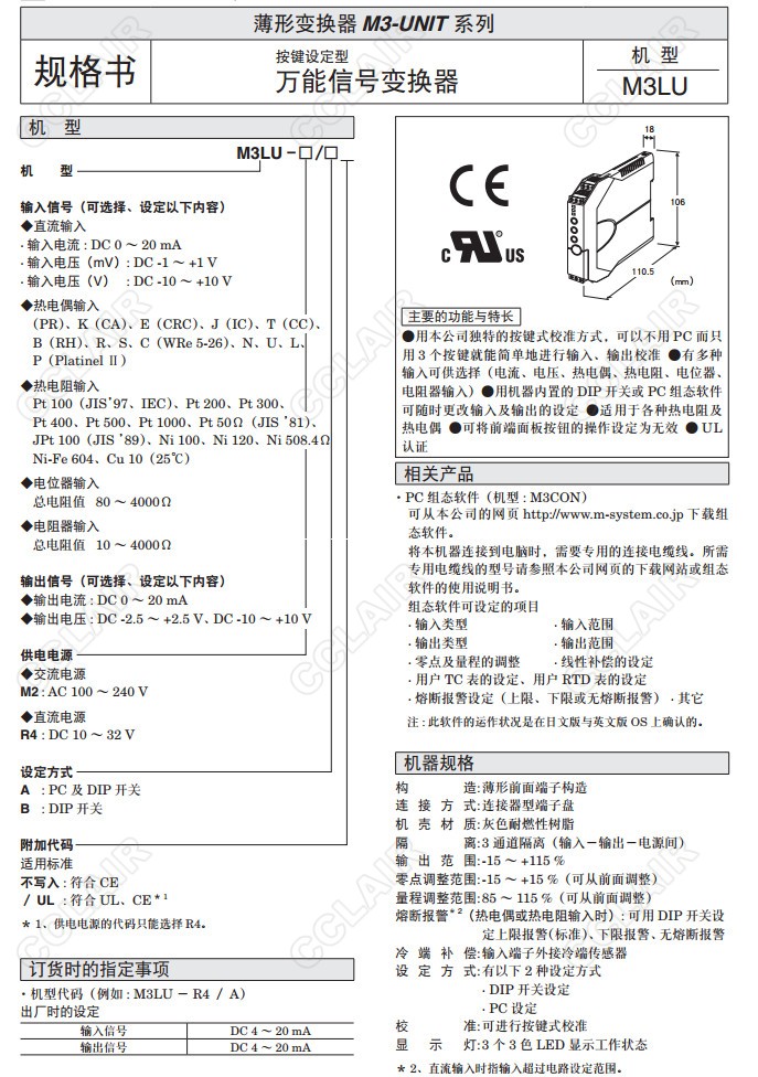 M3LU,M3LU-R4/A,M3LU-M2/A,M3LU-M2/AUL,M3LU-M2/B,M3LU-M2/BUL,能信號(hào)變換器(按鍵設(shè)定型)M3LU-R4/A,M3LU-R4/AUL,M3LU-R4/B,M3LU-R4/BUL,
