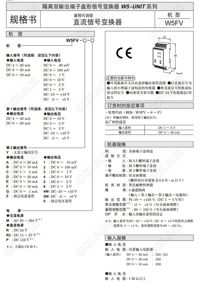 W5FV,W5FV-6-P,W5VS-A,W5FV-B.W5FV-C.W5FV-D,W5FV-E,W5FV-F,W5FV-G, 直流信號變換器(量程可調(diào)型)W5FV-Z, W5FV-1,W5FV-2,W5FV-3,W5FV-4,W5FV-5,W5FV-6,W5FV-4W,W5FV-5W,W5FV-0,