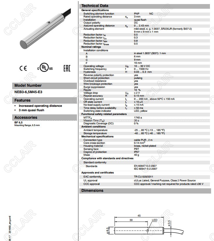 NEB3-6,5M45-E1-V1,NEB3-6,5M45-E2-V1,電感式接近開關(guān)