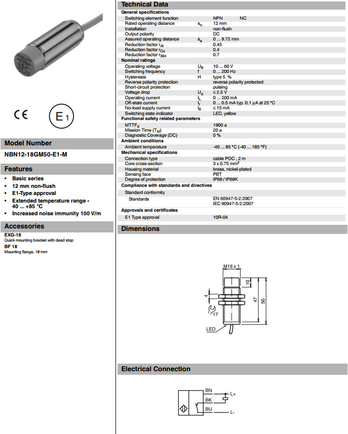 NBN12-18GM50-E1-M電感式接近開關