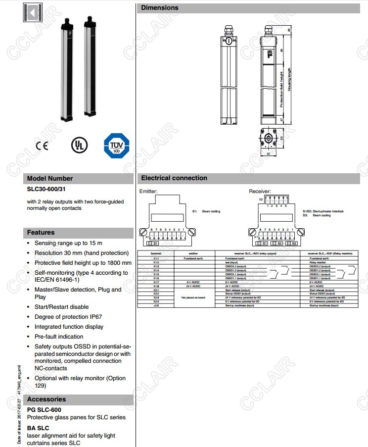 SLC30-600-S,SLC30-600/31,SLC30-750,SLC30-750-S,安全光柵